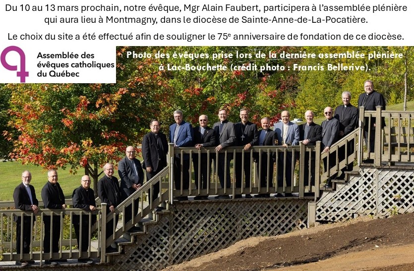 Date: Lundi, 2 mars, 2026 - 11:30Assemblée plénière des évêques du Québec du 10 au 13 mars 2026 Communiqué disponible ici