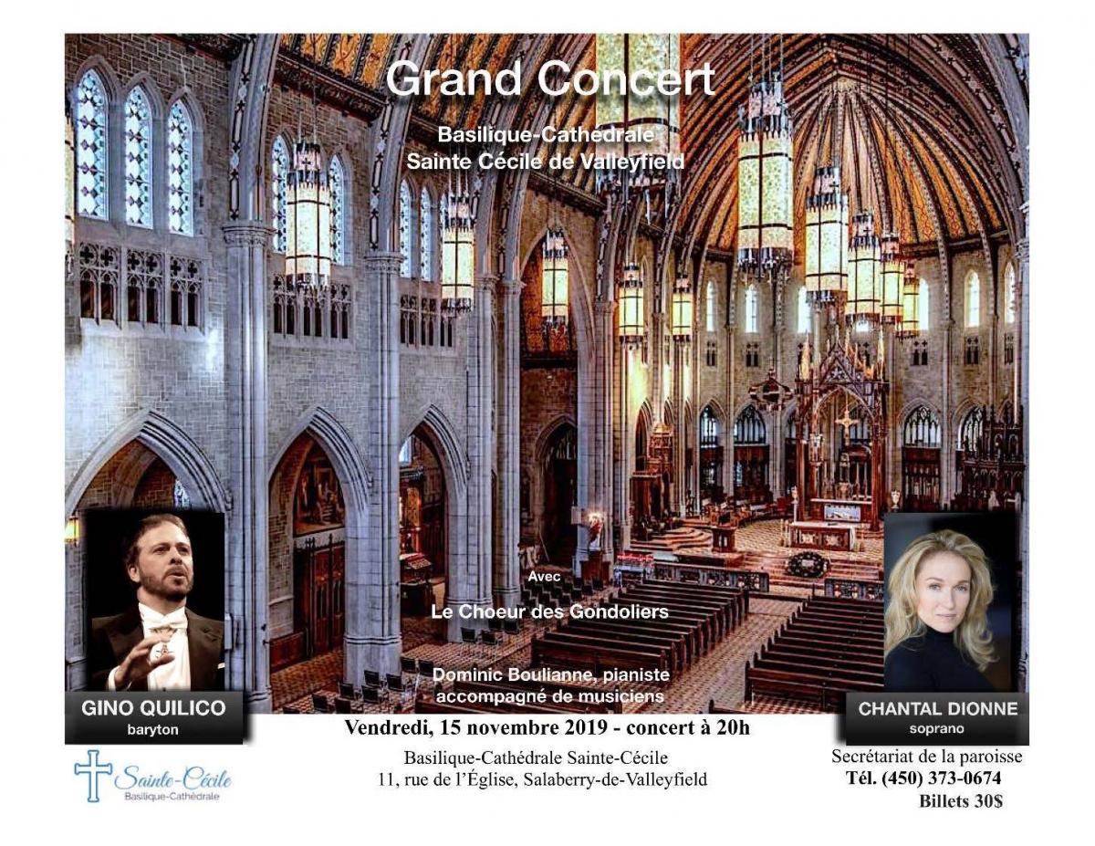 Le célèbre baryton Gino Quilico offrira un concert bénéfice le 15 novembre prochain à la basilique-cathédrale à Salaberry-de-Valleyfield. Celui-ci sera accompagné par la soprano Chantal Dionne, le pianiste Dominic Bouliane et le Choeur des Gondoliers. De passage dans les studios de Csur la télé, pour une entrevue, celui-ci a révélé plusieurs anecdotes sur sa vie et son métier.  Le concert-bénéfice servira pour les travaux de revitalisation des clochers de la cathédrale. L’abbé Norman Bergeron nous explique toute l’importance de ce projet. Entrevue complète à venir.