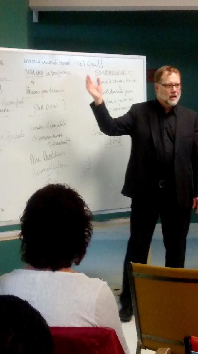 Durant la seconde partie de l’atelier, Mgr Murray nous a fait la lecture de passages de saint Paul. Il nous a expliqué que l’homme naît dans un état de désobéissance face à Dieu. Ce mot, souvent mal compris dans le contexte biblique, ne signifie pas désobéir à des consignes, mais plutôt être laissé à soi-même. Être imparfait, ignorant, perdu. C’est une des caractéristiques liées à notre liberté, notre libre arbitre. Nous en avons besoin, de ce libre arbitre, pour que notre amour et notre dignité soient authentiques et non préfabriqués. Seulement, puisque cette liberté implique que nous soyons des êtres inachevés, nous avons besoin de chercher la miséricorde, en Dieu et en nous-même, pour finalement devenir complets.