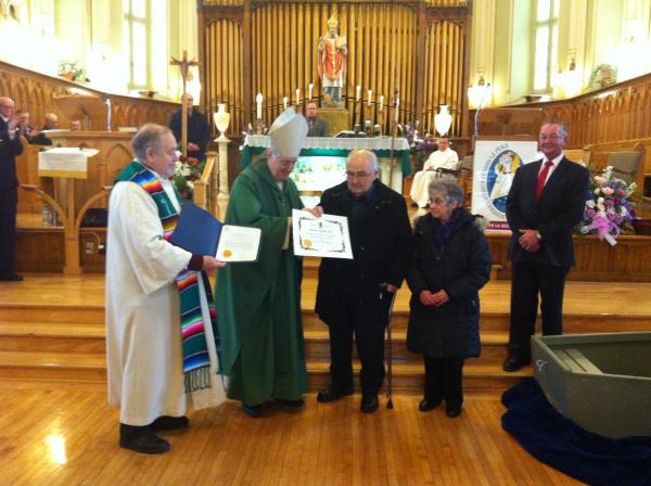 En témoignage de haute appréciation pour son dévouement remarquable et infatigable au service de la communauté de Saint-Jean-Chrysostome, je suis heureux de proclamer Monsieur Amable YELLE, MEMBRE DE L'ORDRE DU MÉRITE DIOCÉSAIN et de lui en conférer le titre et l'insigne. Venu tout jeune avec ses parents de Saint-Antoine-Abbé à Saint-Chrysostome, Amable Yelle y est devenu un citoyen à part entière. Il a siégé à la Commission de crédit de la Caisse Populaire. Il a été membre du Conseil municipal. Il a été actif au sein de la Société Saint-Jean-Baptiste. Mais par-dessus tout, avec son épouse Edna, il a toujours été présent de manière remarquable dans la paroisse Saint-Jean-Chrysostome devenue plus tard partie de la paroisse Saint-Padre Pio. Là, il a œuvré là comme marguillier pendant plus de vingt ans. Il a pris en charge l’église, le presbytère, le cimetière avec tout ce que représente l’entretien de ces institutions dans la vie quotidienne. Il s’est appliqué sans relâche et de tout cœur à gérer les biens d’Église en bon père de famille. Pour tout ce que lui-même et son épouse Edna ont apporté à la communauté paroissiale de Saint-Jean-Chrysostome et pour l’éducation humaine et chrétienne de leurs sept enfants, je les salue avec respect et entière gratitude.